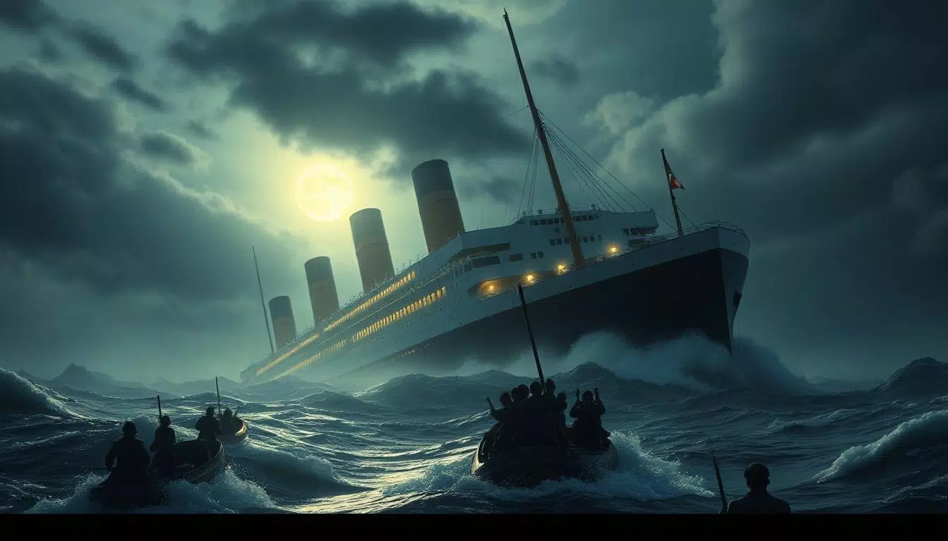 Mientras el Titanic se hunde, Jack se aferra a un trozo de madera flotante. Rose, desde el bote, lo ve y decide que no puede dejarlo atrás. Con valentía, salta del bote y regresa con Jack. Juntos, nadan hacia un bote salvavidas vacío que encuentran a la deriva.