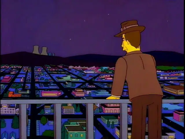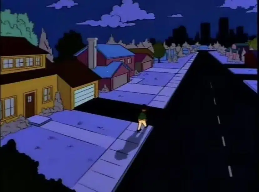 Sometimes, late at night, I end up scrolling through niche corners of the internet where vibes are formed by exterior night shots from The Simpsons. These establishing frames of Springfield capture a nostalgic aesthetic that is both tranquil and moody. The sky is purple; the roads are desolate; this city of chaos and humour is asleep. When I see these stills, I wish I could travel through my phone to this fictional realm. I can think of no better world for a late-night stroll than Springfield.