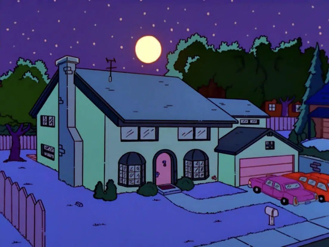 I stumble through the suburbs where countless iconic families rest. In these wee hours, their green lawns look indigo, and my moonshadow lingers long behind me. Passing the homes of these hilarious characters, I reflect on the countless times they've all made me laugh out loud. There's the Van Houten house, where Luann kicked Kirk out so that she could live with her new American Gladiator boyfriend. And the Wiggum abode, where Bart and Ralph formed their friendship over stealing Clancy's key to the city.