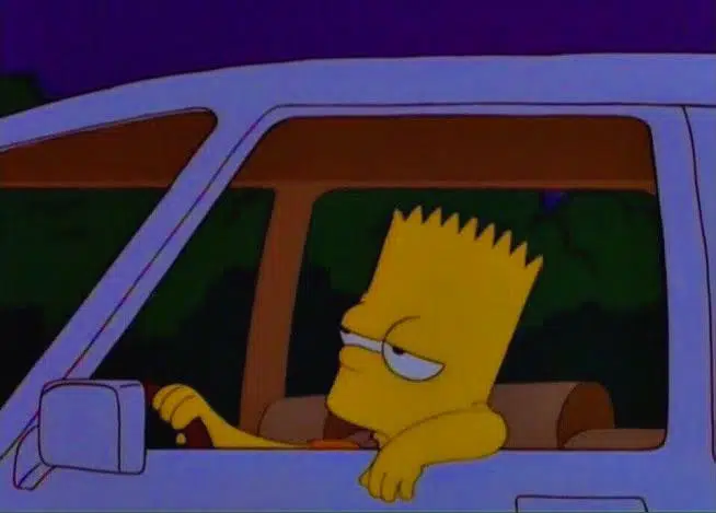 I hop in. Lenny drives. Carl is in the back. I connect to the aux. We peel off. Window down, the night air on my face feels liberating. Lenny takes us past Springfield Elementary, the First Church of Springfield and the Retirement Castle. We don't talk much, letting the hum of the engine and the bass of the music fill the void.