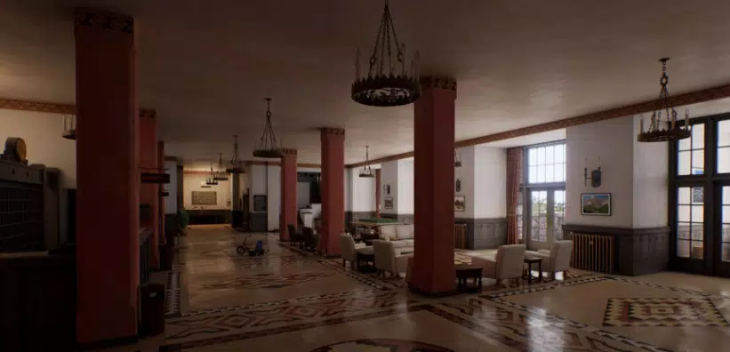 Es en el hotel Overlook, a los siete minutos de iniciada la película, donde Jack tiene una entrevista para ultimar los detalles de la incorporación. En ese momento el encargado del hotel le advierte de una tragedia ocurrida en 1970 donde Delbert Grady, el cuidador a cargo en esa época, tuvo un quiebre en su mente tras pasar varios meses junto a su esposa e hijas en el lugar, matándolas a hachazos y cometiendo suicidio posteriormente.