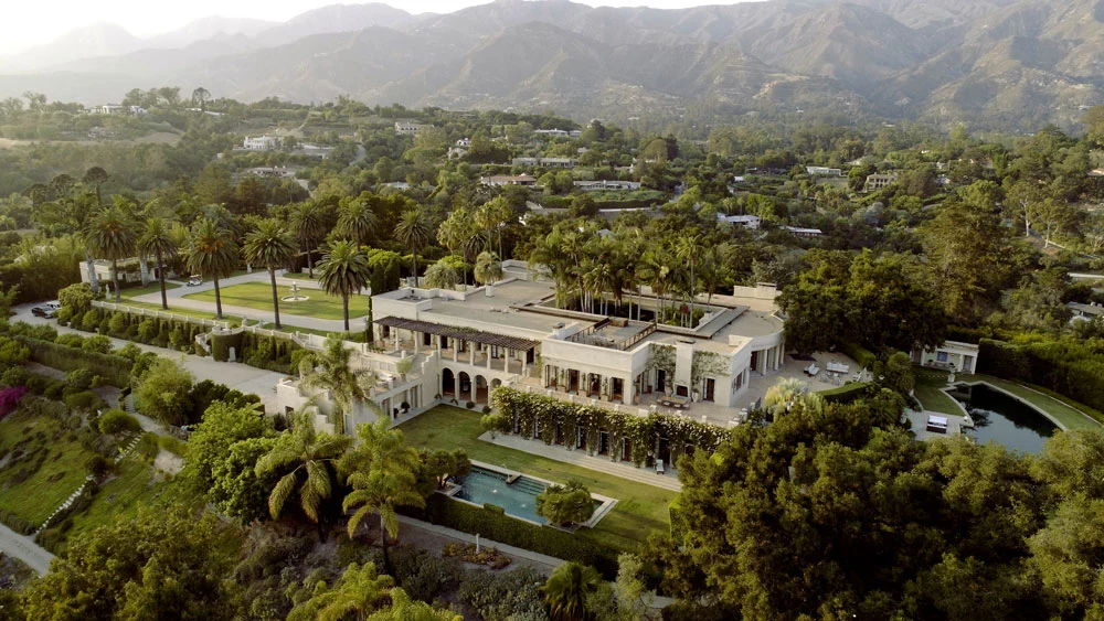 La propiedad está ubicada en Santa Bárbara, California y fue construida en el año 1914. La hacienda ofrece una vista panorámica de 360 grados del Océano Pacífico y las Montañas Santa Ynez. Entre los vecinos de la propiedad se incluyen personalidades como el Príncipe Harry y su familia, la presentadora de televisión Oprah y celebridades como Gwyneth Paltrow.