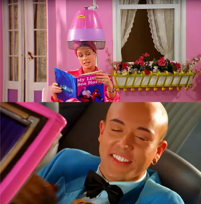 MATTEL trata de liberarse de las sombras. Un ejemplo muy representativo es el tema "Barbie Girl" de la banda danesa-noruega Aqua en 1997. Este sencillo, lleno de insinuaciones sugerentes y subidas de tono, obtuvo un gran éxito y se convirtió en parte del zeitgeist cultural de los 90. MATTEL incluso demandó a MCA Records por el uso no autorizado de la palabra Barbie en la canción, pero la demanda finalmente fue desestimada porque el video musical no presentaba muñecas o imágenes reales de Barbie.