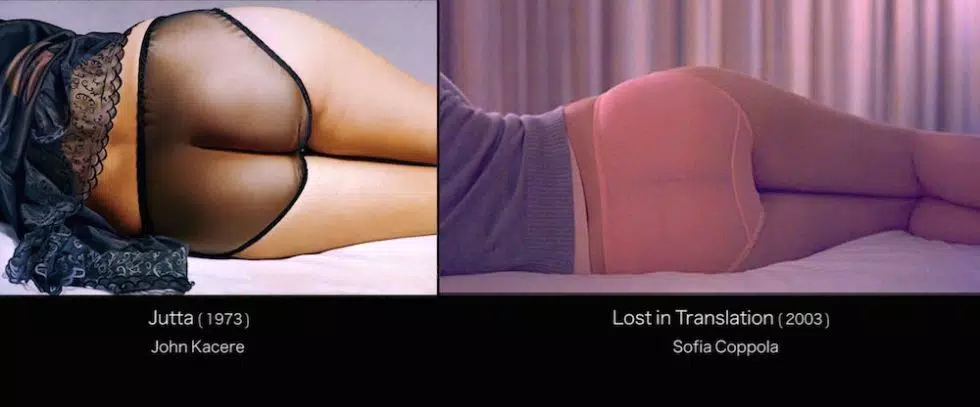 Se ha dicho que esta secuencia inicial es una reproducción de Jutta, cuadro pintado por el hiperrealista John Kacere en 1973.