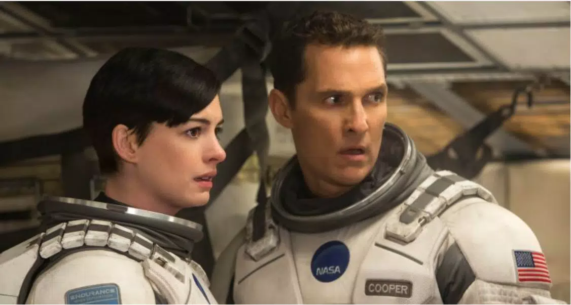 Los personajes, cada uno a su manera, reflejan la búsqueda de conexión en un universo indiferente. En un lado del cosmos, tenemos a Cooper, un piloto y agricultor atrapado en un mundo que ya no lo necesita, interpretado magistralmente por Matthew McConaughey, y a la Dra. Amelia Brand, encarnada por Anne Hathaway- actriz que por decir lo menos, me encanta- es el idealismo hecho carne; su deseo de explorar es también un deseo de conexión, de entender el amor que siente por un compañero perdido. Su relación con Cooper no es solo una búsqueda romántica, sino un intento de hallar significado en un cosmos que a menudo parece vacío. Juntos, se aventuran en una misión monumental: encontrar un nuevo hogar para la humanidad, un refugio en un espacio hostil y desolado.