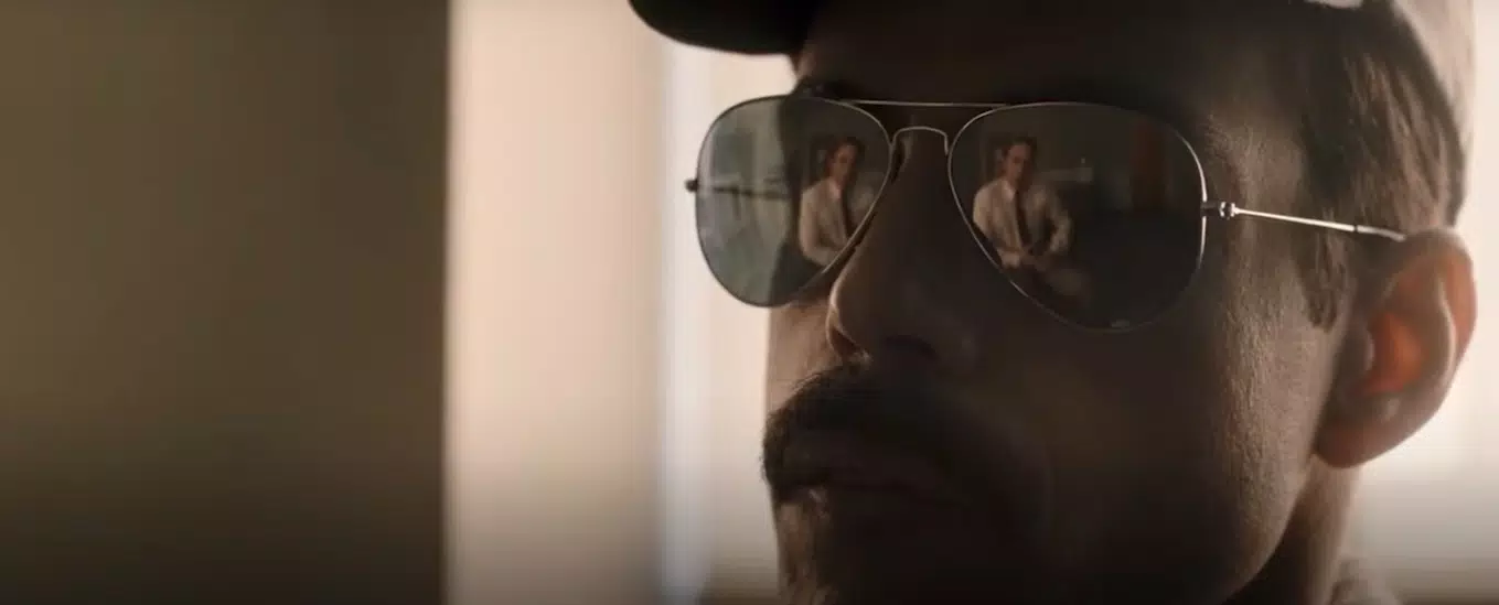 La cruda verdad reflejada en los anteojos, impenetrable ante la miradada de Freddie quien, aunque no deja ver sus ojos, se muestra impactado ante la noticia. La idea visual de este momento es claramente esconderse tras una pantalla y reflejar otra cosa.