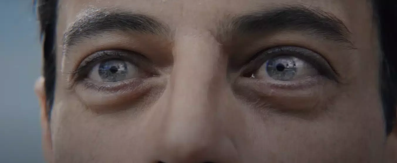 No más gafas, ni pantallas ni mentiras. Son ahora los emocionados ojos de Freddie en que vemos reflejados al público completamente fascinados. La conexión entre artista y gente. Un ser humano sin defensas, pero fortalecido con la energía de su talento y la música. La mirada lo dice todo.