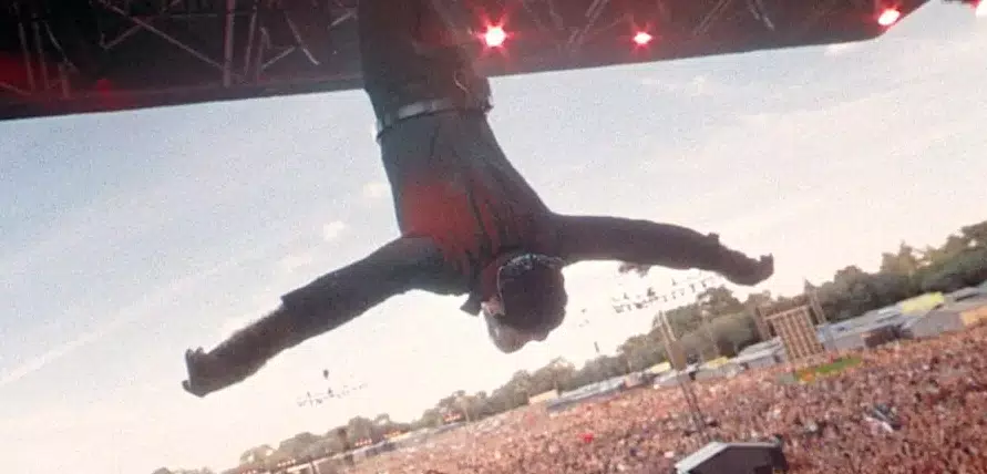 Entonces, volvemos a “Better Man” que también tiene un climax en un recital multitudinario, el ya mencionado Knebworth. Allí se llevará al máximo el concepto de Robbie contra sus distintas versiones que primero se aparecían en reflejos y luego ya podía verlos entre el público. Su mayor miedo, el rechazo de sí mismo infiltrado en la gente que lo ama, convirtiéndolos en potenciales enemigos. Y en ese recital, el que más temía, se convertirá literalmente en una batalla campal sangrienta entre Robbie y todos sus Robbies. Una secuencia fascinate, cruda y catártica.
