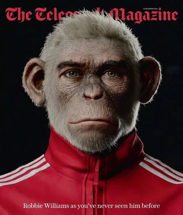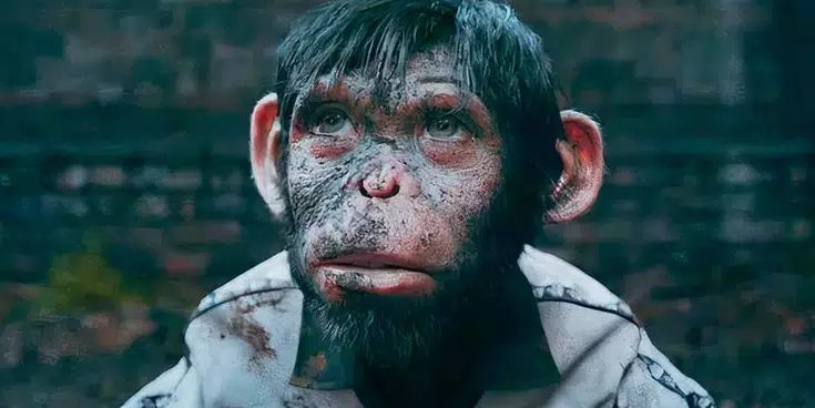 El uso de los efectos visuales es espectacular. En ningún momento se siente fuera de lugar o exagerado; este mono desquiciado encaja perfectamente en cada fotograma, y eso es un logro impresionante. La fotografía es otro de sus puntos más fuertes: constantemente vemos al protagonista reflejado en espejos, pantallas o fragmentado en diferentes versiones de sí mismo, mostrando la forma en que es criticado o cómo él mismo se percibe. Una de las escenas más importantes es cuando lleva la televisión al cementerio, y a través del reflejo en el vidrio vemos su pasado. Se observa a sí mismo.