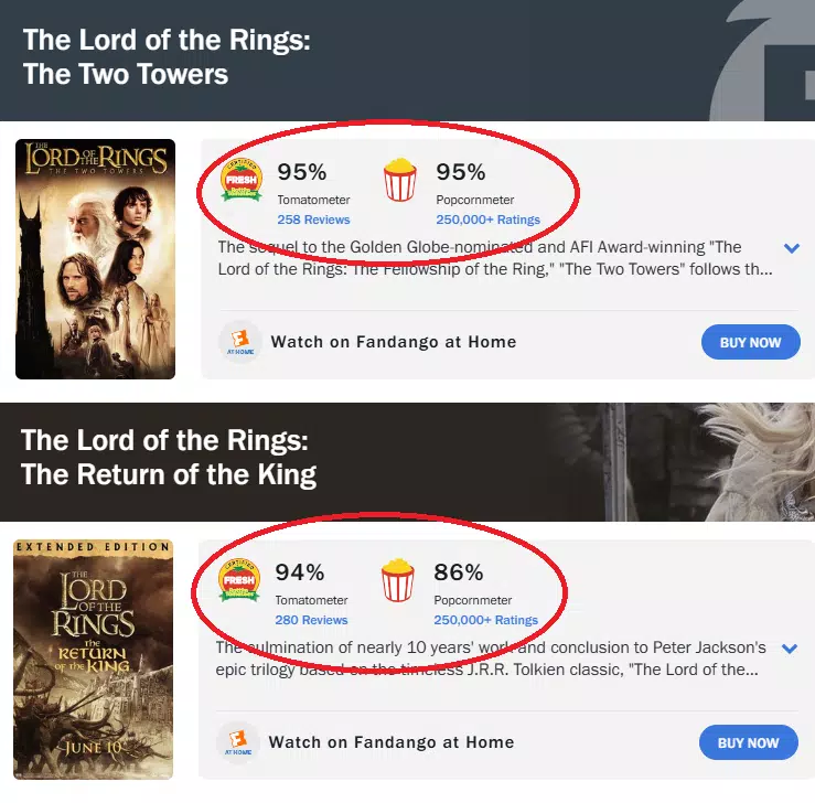 Tomemos como ejemplo las películas del Señor de los Anillos. La tercera entrega “El Retorno del Rey” (2003) ganó el Oscar, cuando la segunda “Las Dos Torres” (2002) es considera la preferida por el público. Digamos que este sea un premio de consolación. ¿Qué garantiza que para ese jurado la segunda debía ser sí o sí su preferida? ¿Se supone que solo una sola afirmación debe ser la que se imponga sí o sí?