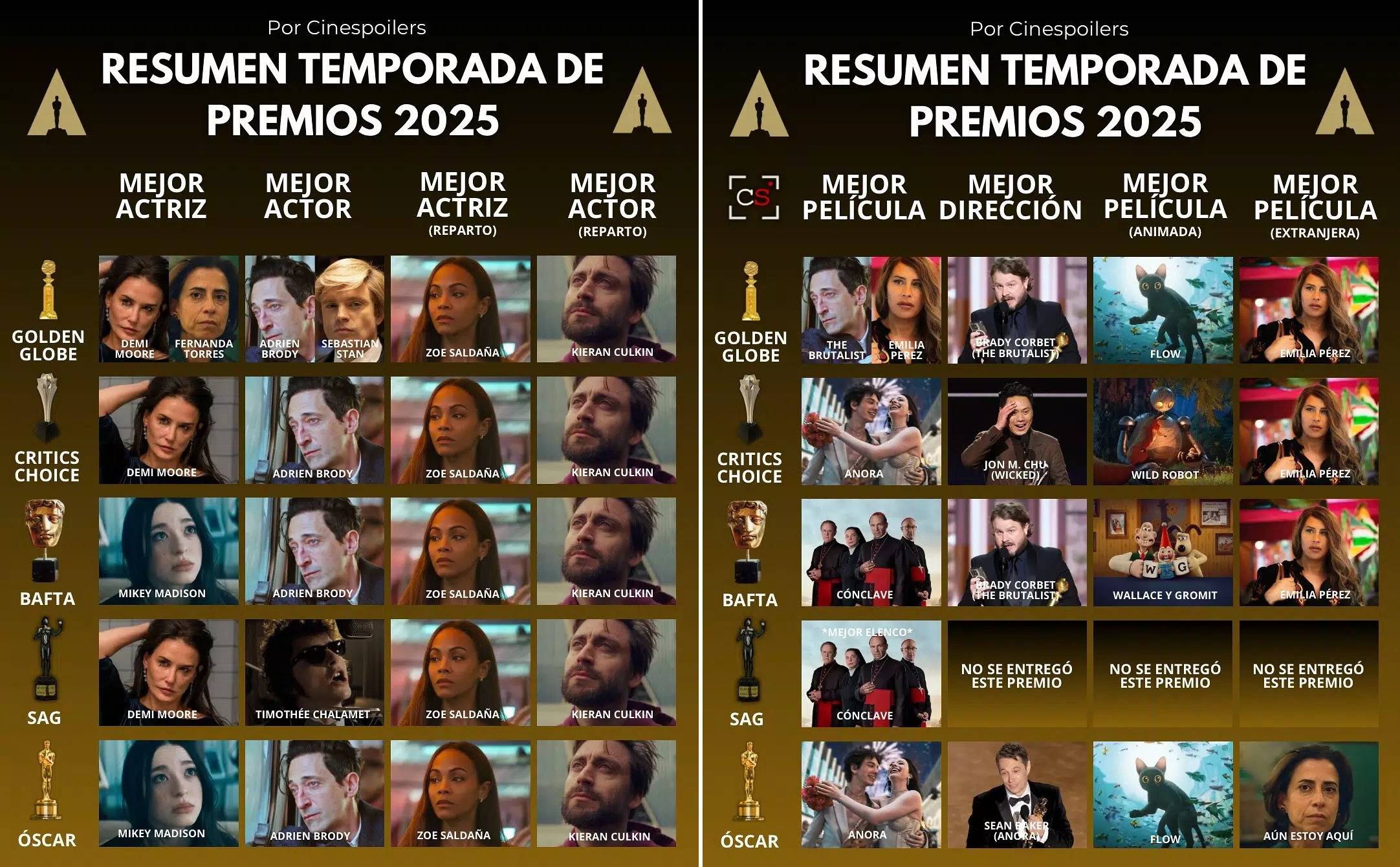 Tomando como referencia la edición de este 2025, de la categoría “Mejor Película”, solamente he visto “Wicked” y “La Sustancia”. No he visto las 10 nominadas. Pero ahí está mi punto con esto. Si le echo un ojo a cada una de ellas, ¿estaré viendo objetivamente las mejores películas del pasado 2024? Tal vez, es probable. Así como tal vez no.