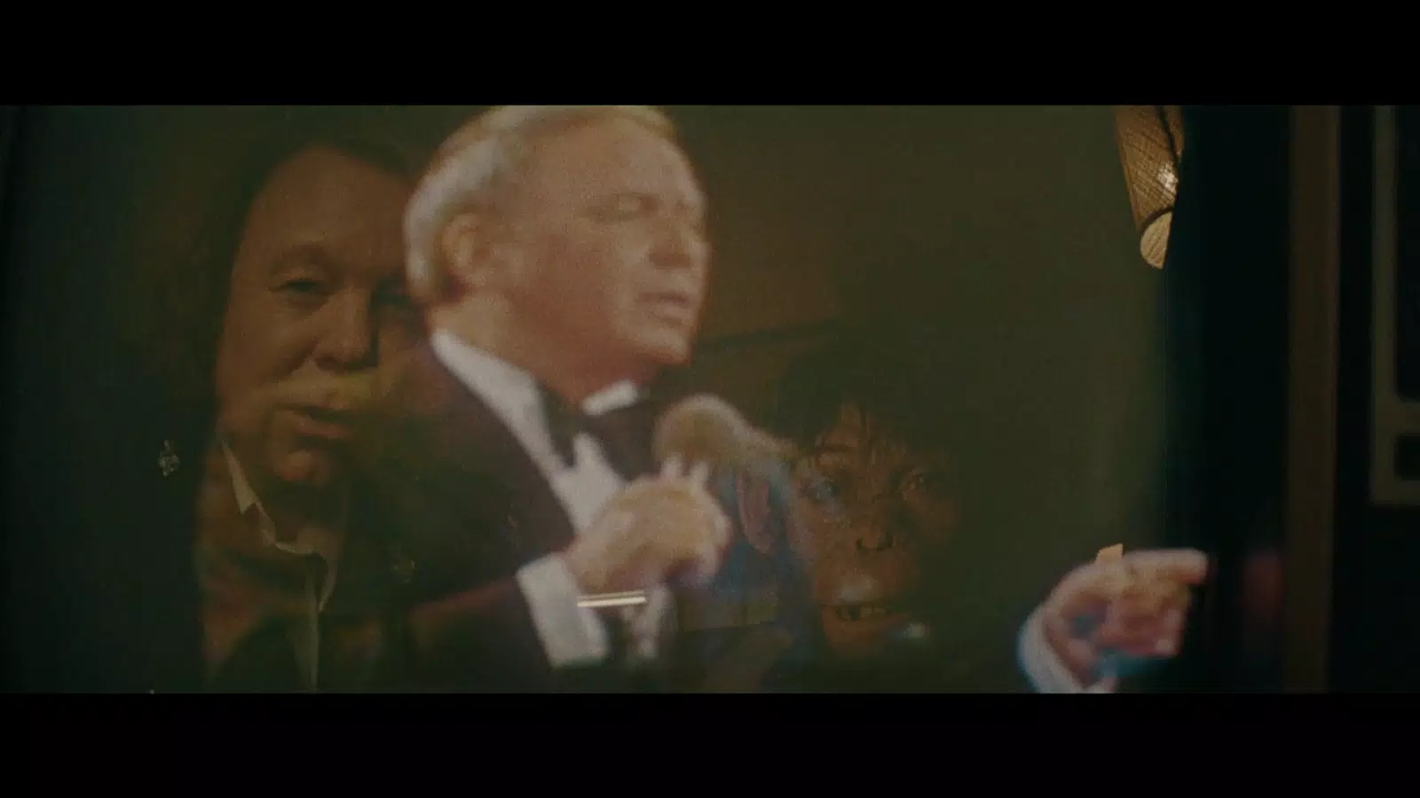 En los primeros minutos de la película, el protagonista admira a Frank Sinatra a través de la pantalla, sentado en el sofá en compañía de su abuela. La escena es muy bella e idílica. El pequeño Robbie comienza a entonar la letra de “My Way” cuando su papá, quien le contagió su pasión por entretener al público y por el cantante, llega del trabajo. Con entusiasmo empiezan a desplegar su usual coreografía en el living de una casa humilde en Reino Unido. En el momento de mayor amplitud de la canción, la cámara se aleja un instante para poder apreciar la grandeza y dulzura del momento. Las figuras de Robert y su padre se reflejan, como si de un sueño se tratara, en el pequeño televisor mientras disfrutan escuchando el canto de un “Dios”.